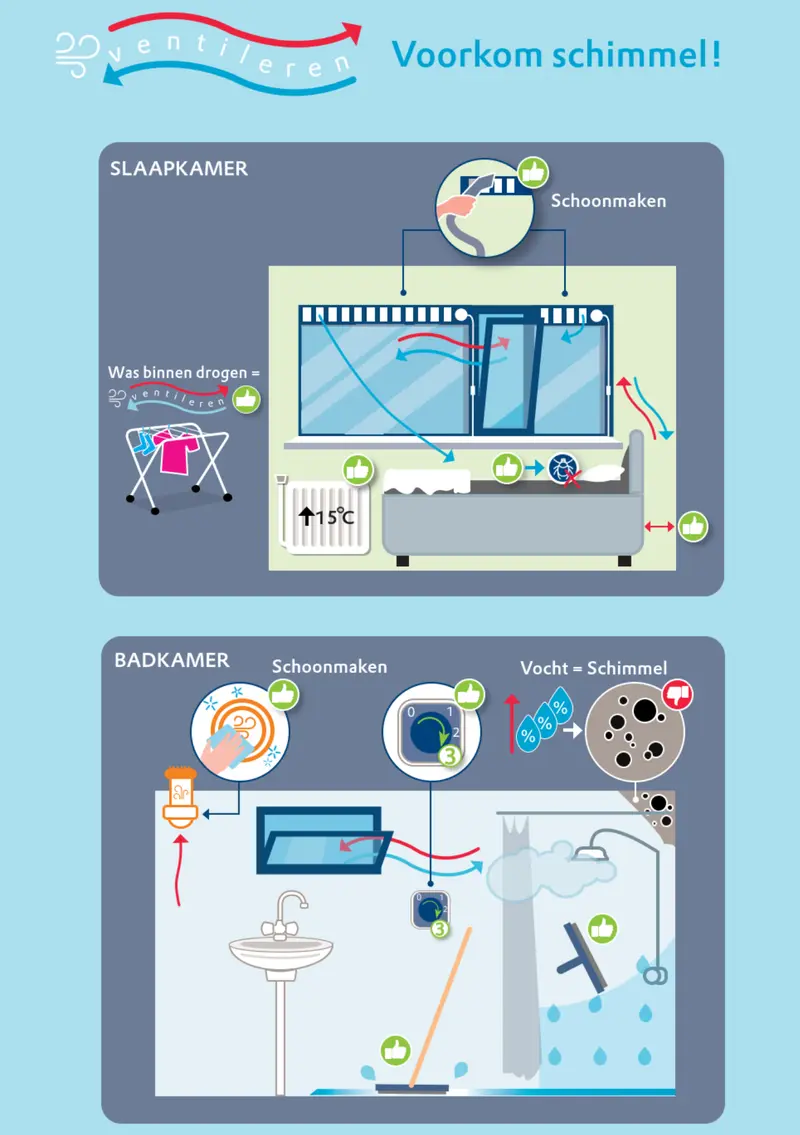 Wil je meer weten over de verschillende soorten ventilatie en wat jij in huis kan doen? Bekijk dan de pagina over ventileren.