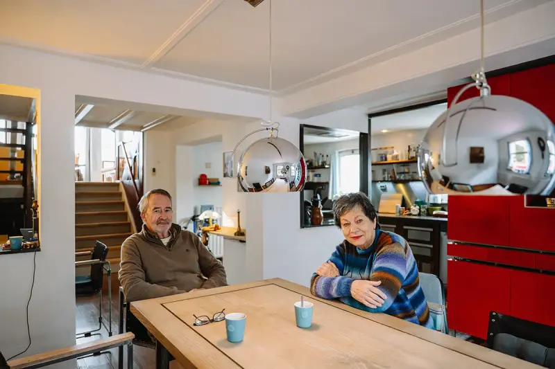 Tot 2000 leefde ze met veel plezier in de woning. Maar een oud huis zoals dit heeft altijd last van optrekkend vocht. “Rond de eeuwwisseling hebben we de buitenmuren vlak onder het maaiveld open gekapt en voorzien van een laag rubberoid. Die laag zorgt ervoor dat er geen vocht meer kan optrekken. Het was een enorme klus maar wel een met resultaat. Geen vochtprobleem meer!” Wim vertelt dat in die periode het huis ook zijn definitieve indeling heeft gekregen, met als eindresultaat een grote deurloze ruimte met drie niveaus. “Het is in ons huis dus altijd overal even warm.”