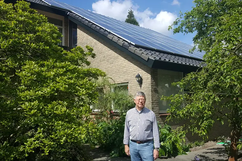 ‘We hoorden via kennissen van ons dat zij hun hybride auto oplaadden met eigen opgewekte goedkope stroom. Wij vonden dat ook een interessant idee. Des te meer, omdat ons energieverbruik hoog was. We hebben toen via de gemeente meegedaan aan een energiescan en dat was voor mij de aanleiding om in zonnepanelen en andere maatregelen te duiken.’